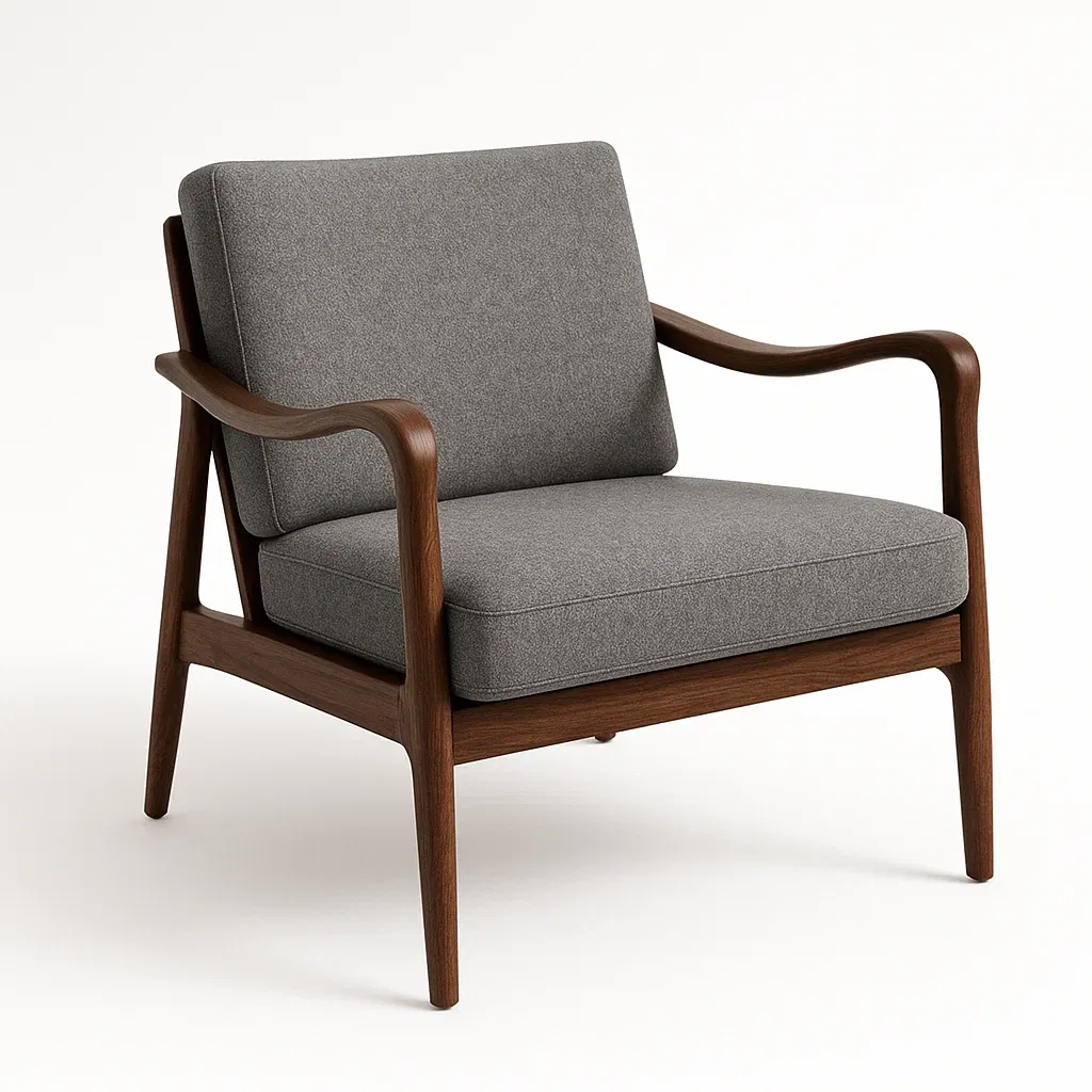 Una sedia singola con struttura in legno, adatta per spazi abitativi o di lettura interni.
